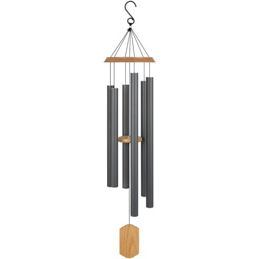 Each of our signature symphonies chimes is made of all wood and aluminum construction. The durable powder coated finish along with the industrial cord makes for a chime that will withstand the elements. Each of the tubes are tuned to a note in a specific key – this chime is tuned to the scale of C. This chime also features our adjustable striker! 1 1/4" diameter tubes