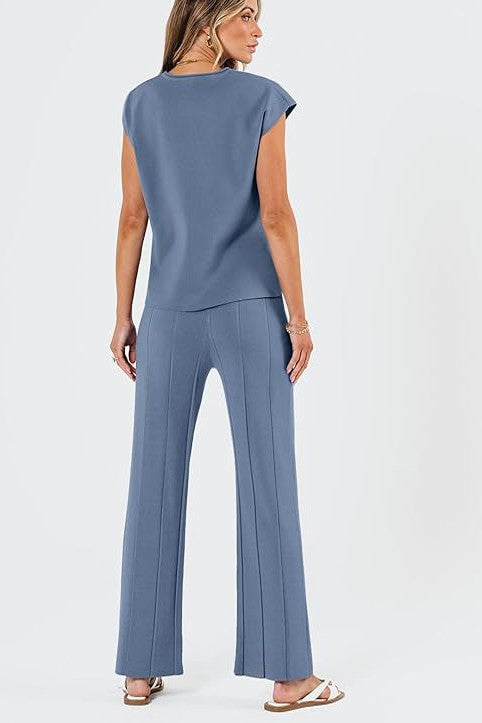 SOFT KNIT PANTS AND TOP SET WITH ELASTICATED WAIST BAND