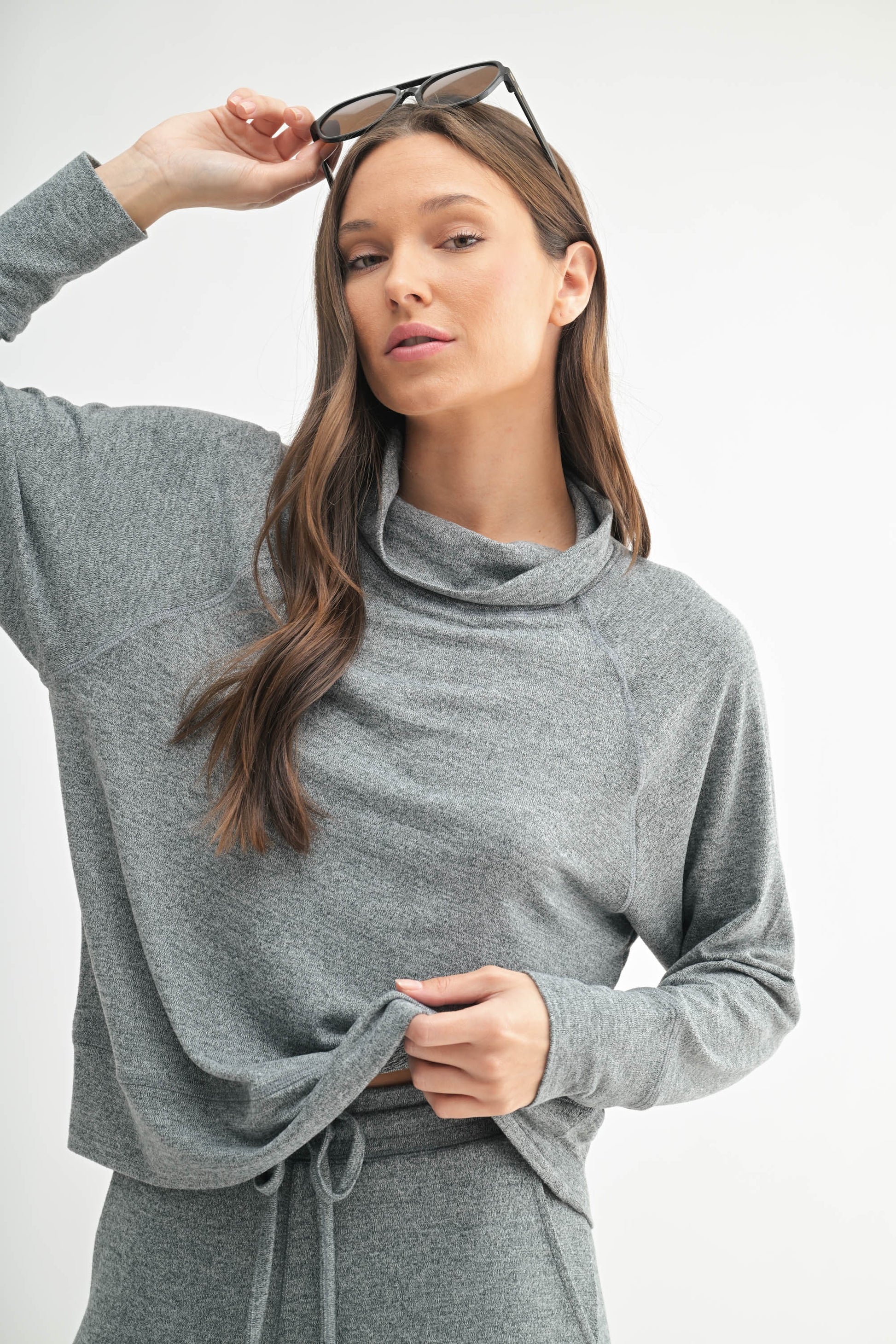 Wrap yourself in cozy elegance. Crafted from luxurious brushed Hacci fabric, this long-sleeve top features a flattering cowl neckline and raglan sleeves for effortless style. The loose, wide-fit sleeves offer a relaxed silhouette, making it perfect for lounging or layering. Soft, breathable, and lightweight, this pullover will be your go-to for comfort without sacrificing chic appeal. Luciana is 5'9", a size 2, and is wearing an S 95% polyester, 5% spandex.