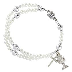 This simple, yet elegant First Communion bracelet is sure to compliment any traditional First Communion attire. It makes a great gift for a First Communicant and perfectly captures the joyful spirit of their Communion Day. It is an ideal keepsake that will be treasured for years to come.