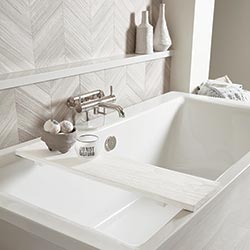 Simple and tasteful, the paulownia wood board will elevate your bath routine. Hold candles, a book, or a steaming cup of tea, the caddy will turn your bathing experience into a dream. Can also be used to hold towels or other bathroom necessities. Please do not submerge in water.